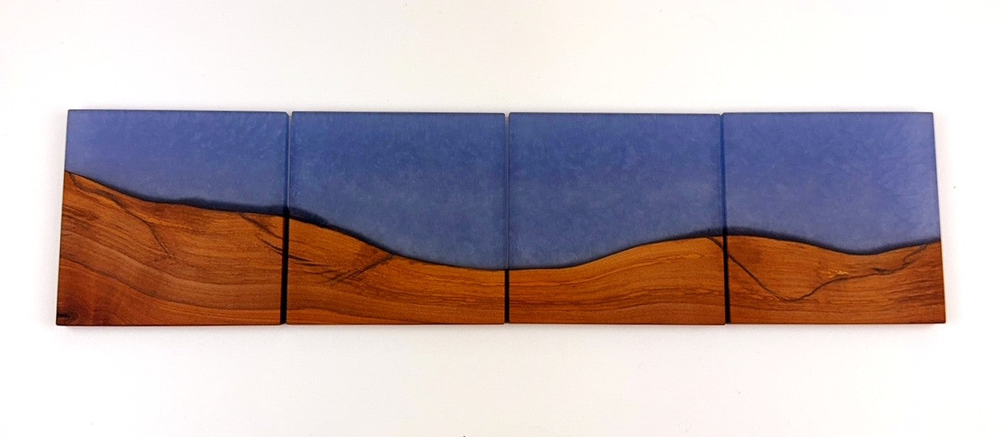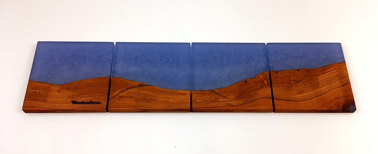 Elevate your table game with these bold Applewood and Blueslate epoxy resin coasters. This set of four merges natural wood grain with blue-toned resin for a look that refuses to blend in. Each coaster measures 4 1/4" square with a substantial 3/8" thickness, providing serious protection for your surfaces while making a statement. Handcrafted character meets modern edge—the kind of coasters that spark conversation.