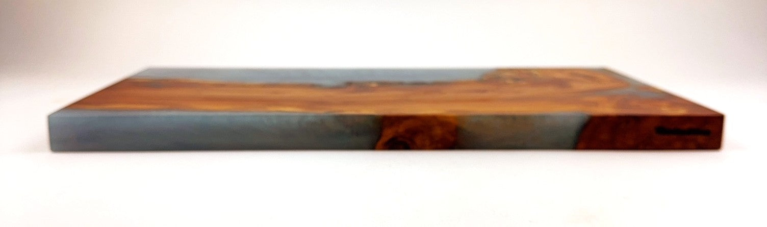 Applewood charcuterie board with Venice Gage epoxy resin. Finish is 100% food grade/safe Walrus brand mineral oil with Walrus brand cutting board wax topcoat., Pics show both sides.