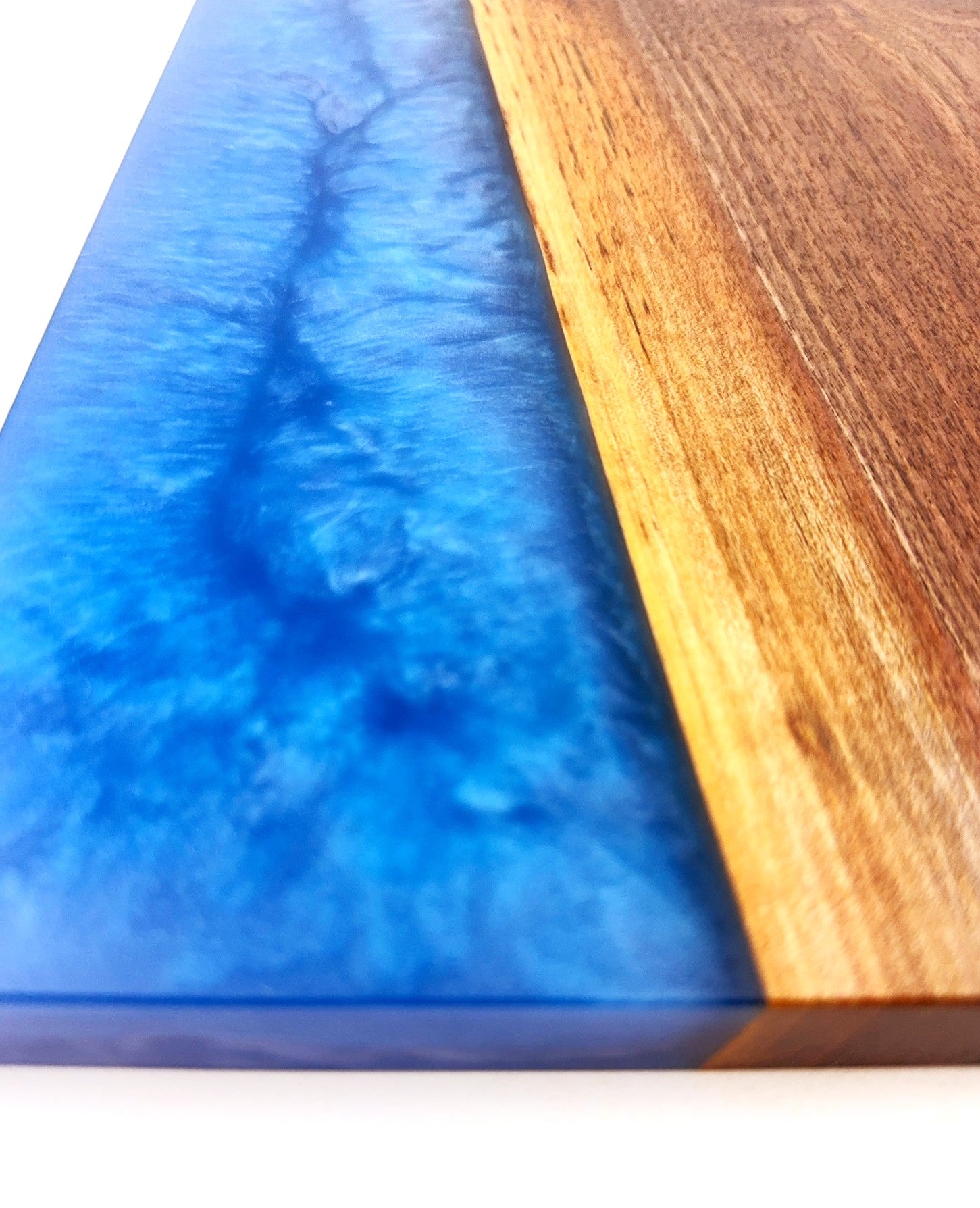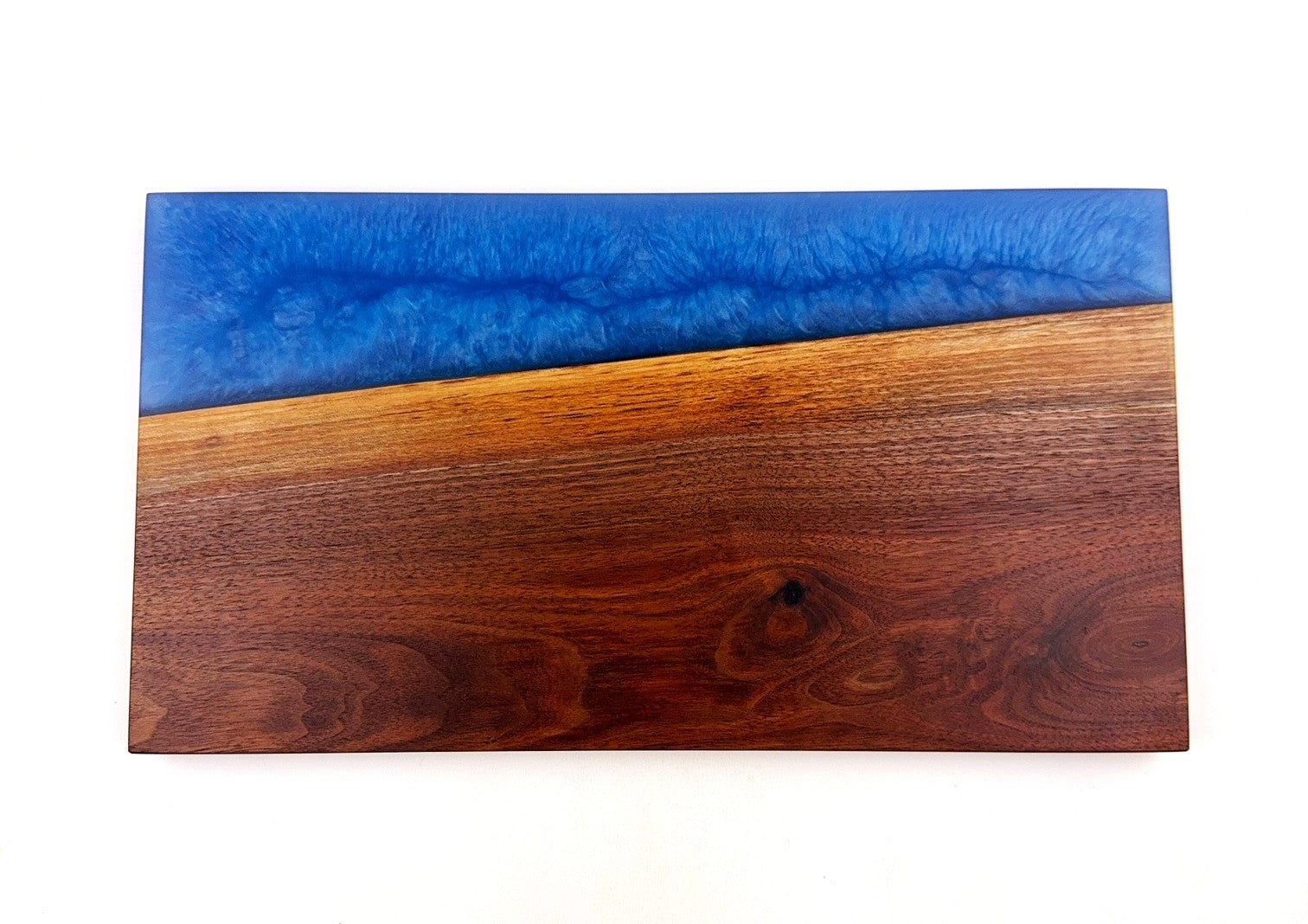Walnut charcuterie board with Caribbean Slate epoxy resin. Finish is 100% food grade/safe Walrus brand mineral oil with Walrus brand cutting board wax topcoat., Pics show both sides.