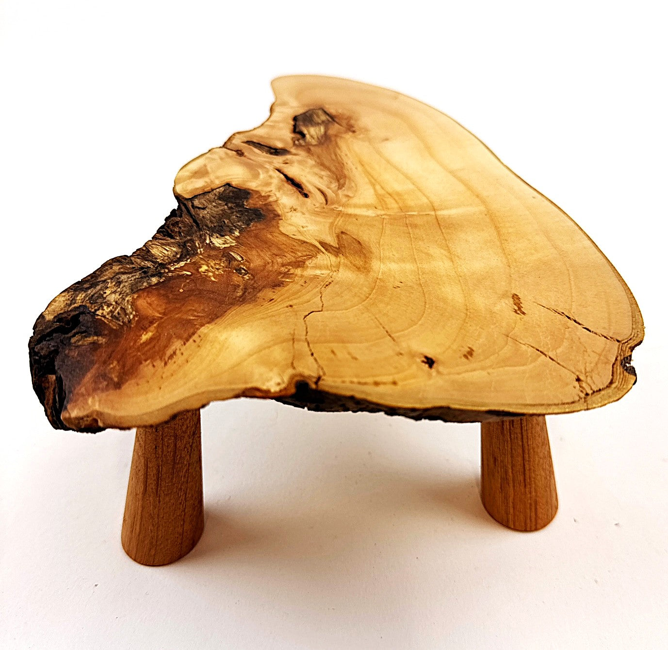 Showcase your finest pieces on this handcrafted Applewood Display Table, expertly constructed from premium applewood. Measuring 8" wide by 5½" deep by 3" high, this compact display stand offers the perfect proportions for featuring collectibles, jewelry, or decorative objects. The matching applewood legs provide sturdy support while maintaining visual harmony with the tabletop. Ideal for retail displays, galleries, or personal collections, this piece combines functional design with the natural warmth and grain character that applewood is renowned for.